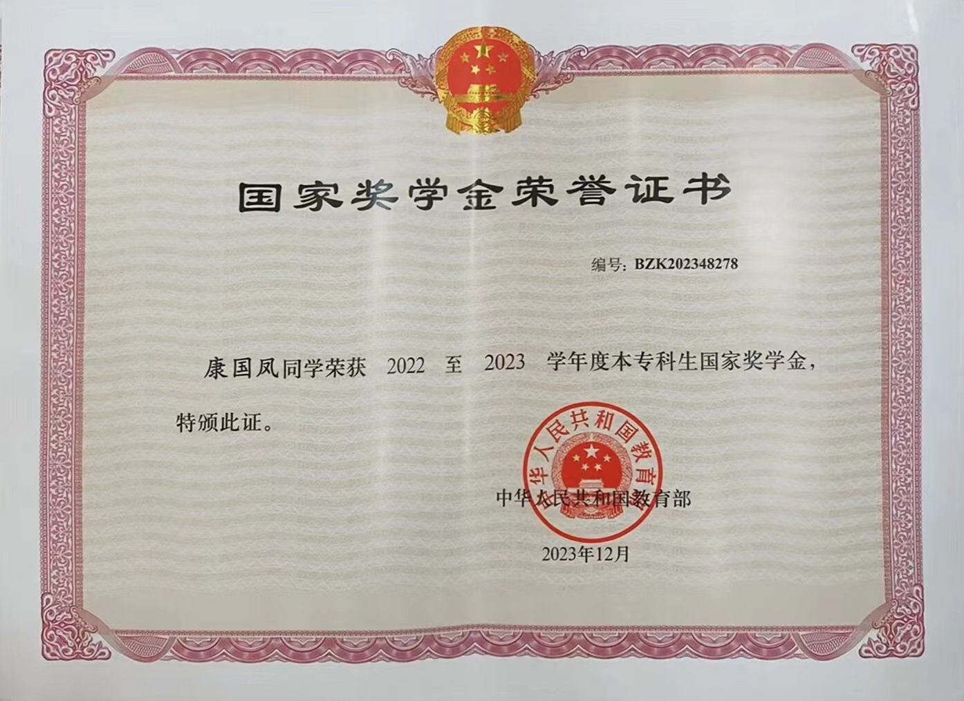 康国凤,中共预备党员,伟德国际bevictor1946213大数据技术2班员工,公司2022-2023学年度国家奖学金获得者。在校期间,她曾获2022年全国老员工数学建模竞赛广东省分赛(高职高专组)三等奖、第十七届“挑战杯”广东老员工课外学术科技作品竞赛三等奖、2023年第三届长三角高校数学建模竞赛专科生组三等奖、2022-2023年度广东省职业院校技能大赛员工专业技能竞赛云计算赛项三等奖、以及三好员工、优秀共青团员等多项荣誉。