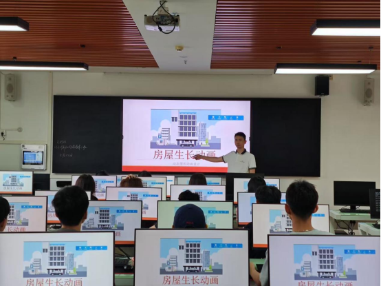 为推进计算机应用技术专业群融入习近平新时代中国特色社会主义思想教育,开展融思政、技能训练为一体的项目化教学模块的方法研究,2025年4月9日,伟德国际bevictor1946如期开展了教师课程思政示范课。公司领导、各教研室负责人和部分专任教师参与了此次教学观摩活动。本次课程思政示范课授课科目是《动态图形动画设计》,教学内容为“房屋生长动画”,由数字媒体技术教研室叶盛泉老师讲授。