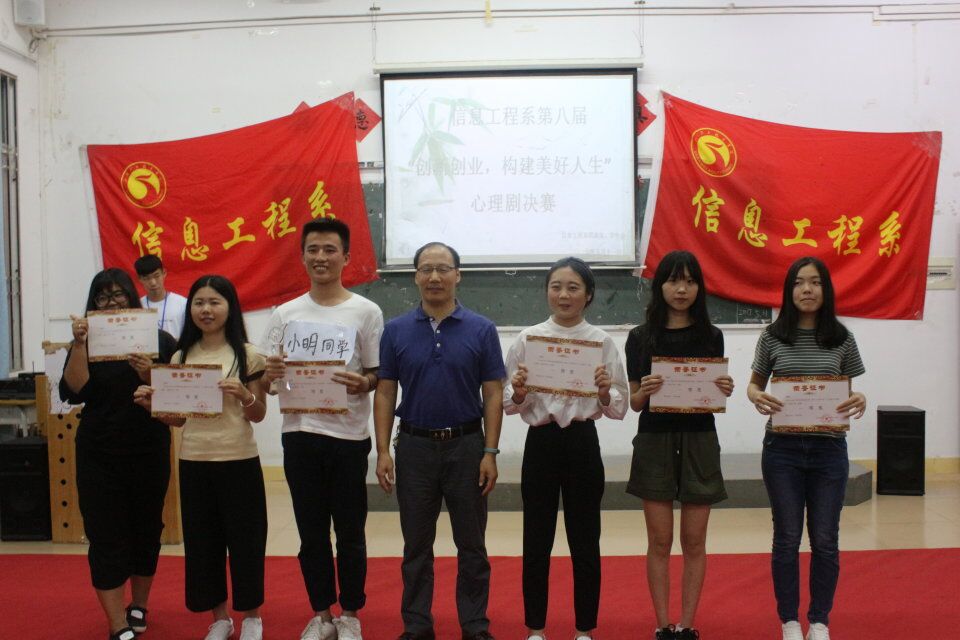 5月11日晚上19:30,我系第八届以“创新创业,创立好人生”为主题的原创心理剧大赛决赛在电教楼108举行。本次出席的评委有汕尾市中小学心理健康教育指导中心副主任、艺术与设计系教育学教研室主任黄永成老师,我系陈铿锵主任,艺术与设计系何建平老师,我系辅导员蓝蔚老师。
