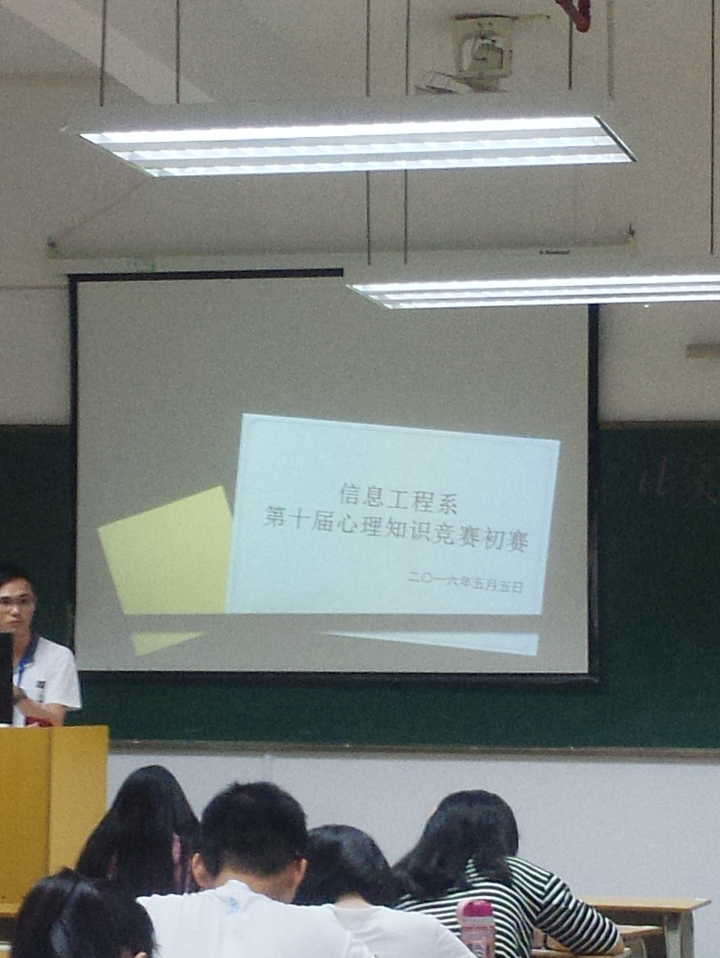 “525”心理健康文化节即将到来,为了进一步强化老员工的心理健康意识,促进心理健康知识的传播,提高老员工心理素质,使心理健康教育更加贴近员工的生活,让我系员工积累到更多心理健康知识,体会到心理健康的重要性,充分展示我系员工积极向上的健康风貌。信息工程系于2016年5月5日晚上7:30在实训楼404举办以“好心态,好生活,好人生”为主题的心理知识竞赛。本场竞赛以试题的形式对本系积极参与的员工进行心理知识的考察。