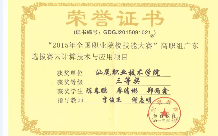 2015年全国职业院校技能大赛三等奖